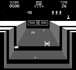 ![]() | Time Patrol (1983) | Like Fury, this version restricts the number of angles you can fly at compared to the arcade original. It does feature the boss ships and different time periods, but there are no parachutists to rescue in this version.You are also flying at night, so the program didn't have to draw clouds. |