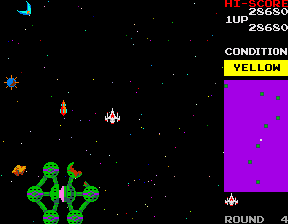 ![]() | Bosconian (1981) | A not hugely popular arcade game at the time, the game combined elements from several popular arcade games - a radar screen like Sinistar or Defender, full 4 way scrolling like Time Pilot, and digitized voices like Berserk. A basic shoot-em-up, with you trying to clear an entire sector of space stations, while avoiding aliens, asteroids and mines. If you take too long, the aliens start really attacking. |