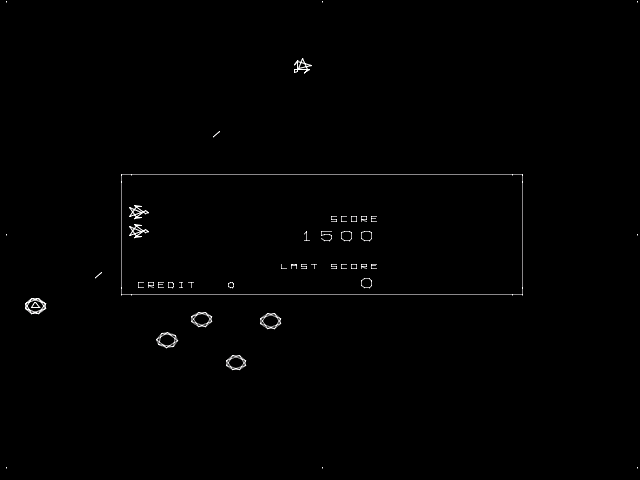 ![]() | Color Meteroids (later renamed to Microbes (see below) (1981) | Quite close to the arcade game (except no real vector graphics, obviously), Color Meteoroids used the Green/black palette, and took two joysticks to control - one to move the ship, and one to move the gun turret (different than the arcade, where the front of your ship always is the gun turret). |