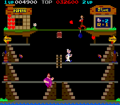 ![]() | Popeye (1982) | A multi-screen game in the same vein as Donkey Kong, but based on the famous characters from the cartoons. You had to rescue Olive Oil, while avoiding Brutus, the sea hags, and other obstacles. |