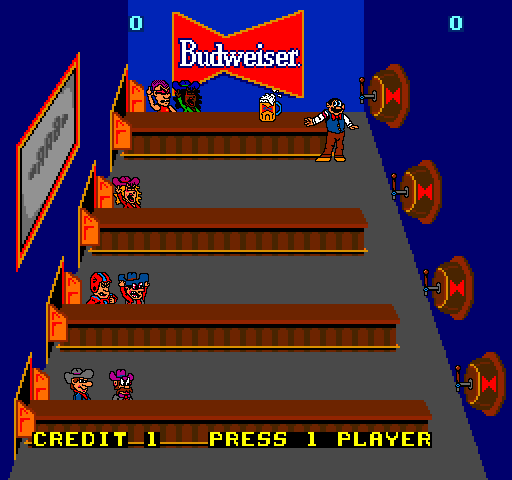 ![]() | Tapper (1983) | An original game where one is a frenzied bartender serving patrons as fast as you can. Because of the link with alcohol, it was released again the following year as Root Beer Tapper. |