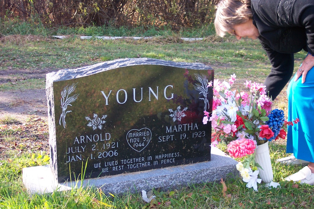Martha putting flowers on Arnold’s grave in October, 2007.