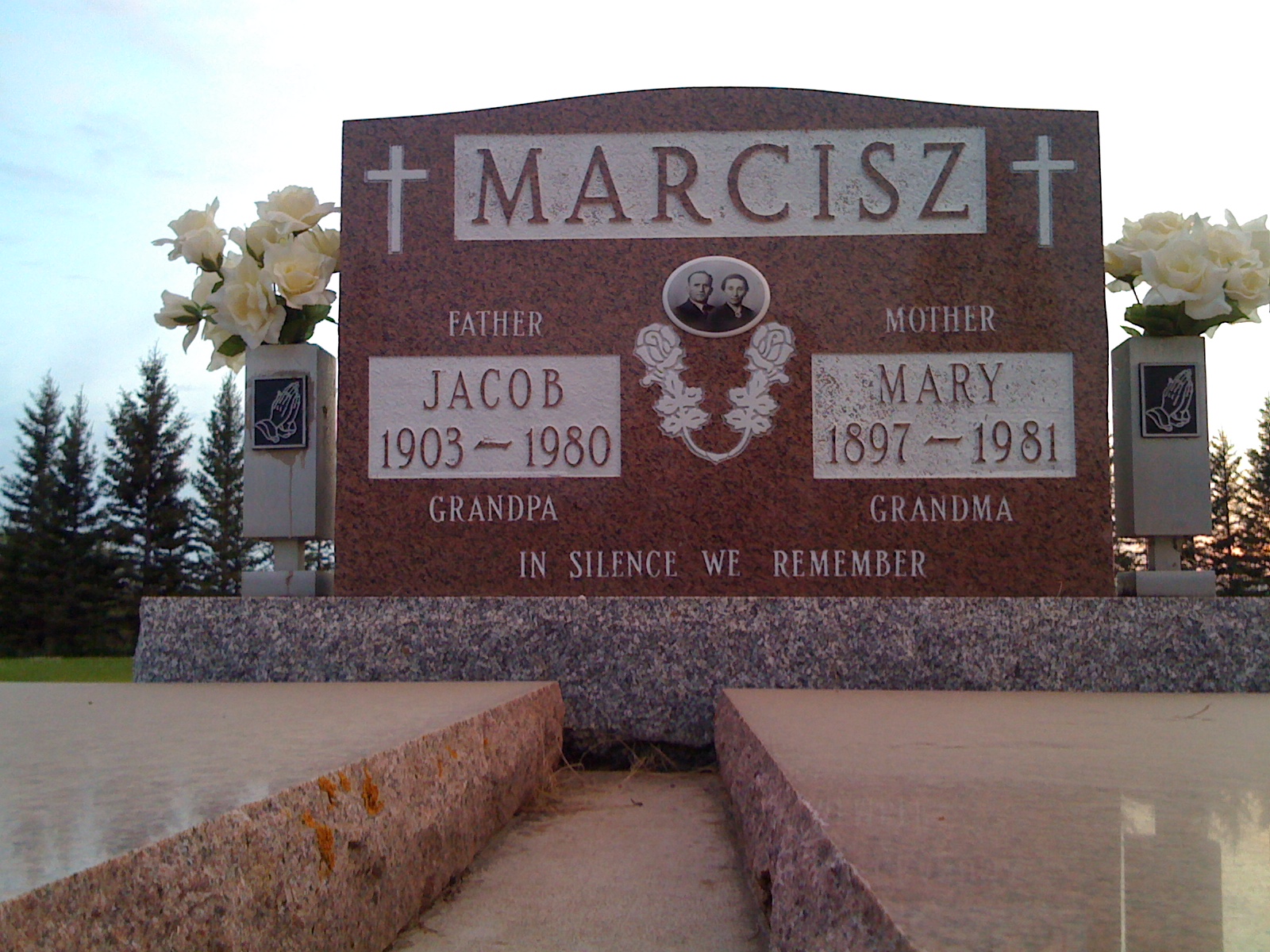 Jacob Marcisz and Mary Kasik’s tombstone, Lintlaw Cemetery, SK.